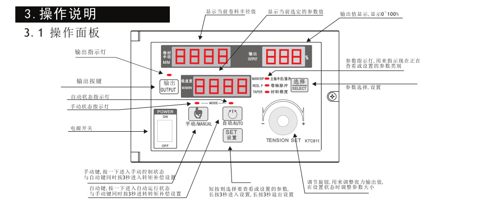 KTC811半自動(dòng)卷徑張力控制器操作說明