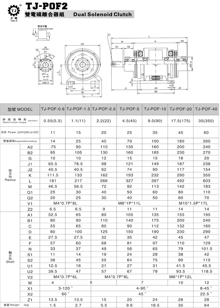 東莞天機(jī)傳動(dòng)(臺灣天機(jī)牌)生產(chǎn)廠家銷售的POF2型雙電磁離合器組合體又稱軸式雙電磁離合器組合體,是由兩個(gè)電磁離合器組合而成。采用的進(jìn)口原材料,臺灣生產(chǎn)加工技術(shù),用的是DC24V直流電壓,產(chǎn)品通過ISO9001質(zhì)量管理體系認(rèn)證,質(zhì)量放心可靠,讓客戶購買無憂。該P(yáng)OF2型雙電磁離合器組合體,軸式雙電磁離合器組合體結(jié)構(gòu)非常獨(dú)特,安裝也極為簡便。緊湊的貫通軸結(jié)構(gòu),即兩個(gè)電磁離合器都裝置在同軸上,極其的合理配置產(chǎn)著各種部件,是一種極其獨(dú)特的組合,適用于正反轉(zhuǎn)、變速、動(dòng)力分配、連接、切離、高速運(yùn)轉(zhuǎn)等多用途。可實(shí)現(xiàn)多種功能,由此機(jī)型可實(shí)現(xiàn)二級變速、高頻度正反轉(zhuǎn)等復(fù)雜并且高精度的控制等多種功能,同時(shí)可以實(shí)現(xiàn)傳遞機(jī)構(gòu)的簡單化,安裝和使用都極為簡便,耐用、實(shí)用。