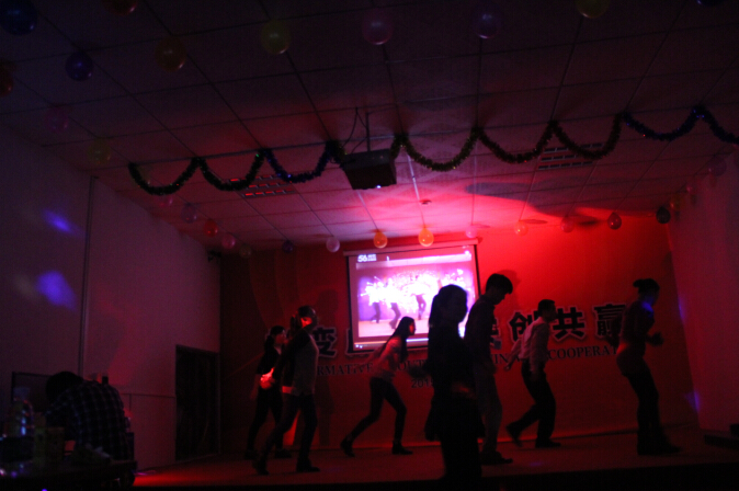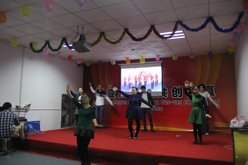 晚會中精彩節目不斷綻放,特約嘉賓書法大師陳老師給我們剖析《西游記》精彩判斷,個個聽的聚精會神;帥哥們的演唱呼聲一片一片的;美女帥哥們精心準備的舞蹈拉動著大家的熱情;一個《賣蘋果》小品將大家的熱情帶到了高潮,笑聲、掌聲不斷;游戲環節生產和辦公室進行了互動,同志們的熱情不減;國際友人過年,當然是少不了我們外貿部的同事獻上的英文歌曲......